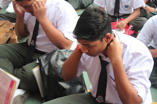 | Pelajar mencatat pengumuman yang diberikan oleh para guru |
